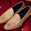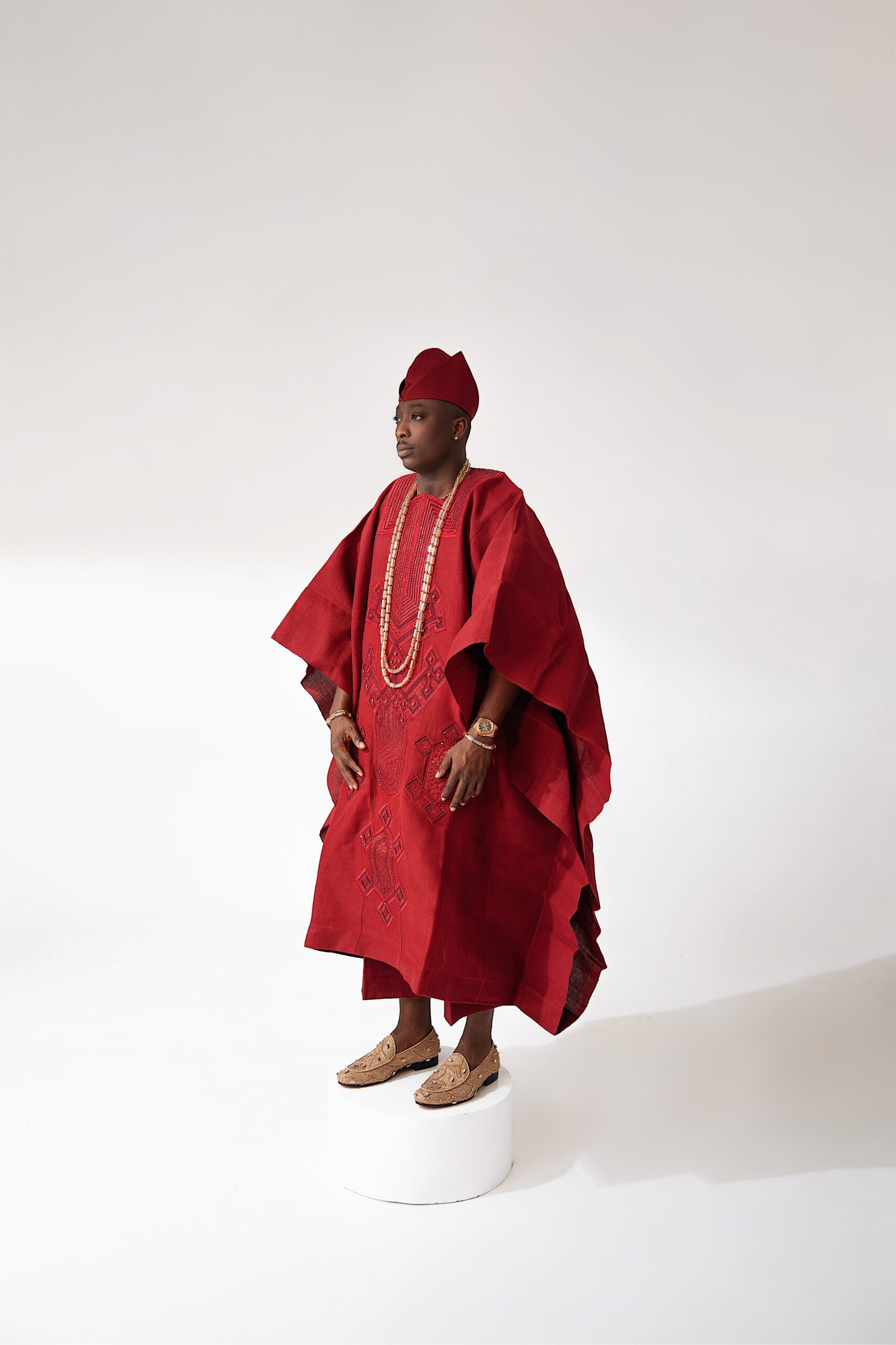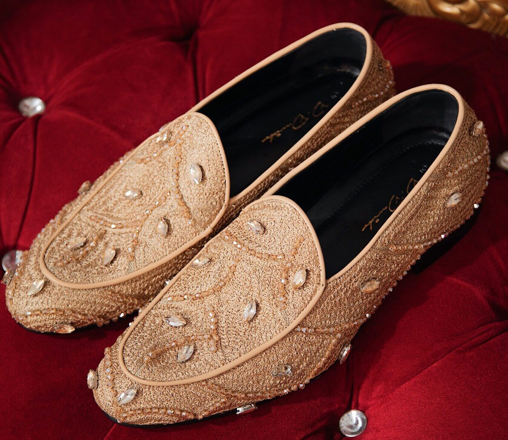 Handcrafted wedding loafers made from premium Aso-Oke fabric, finished with subtle embellishments and Red-bottom sole. A refined choice for the modern groom.